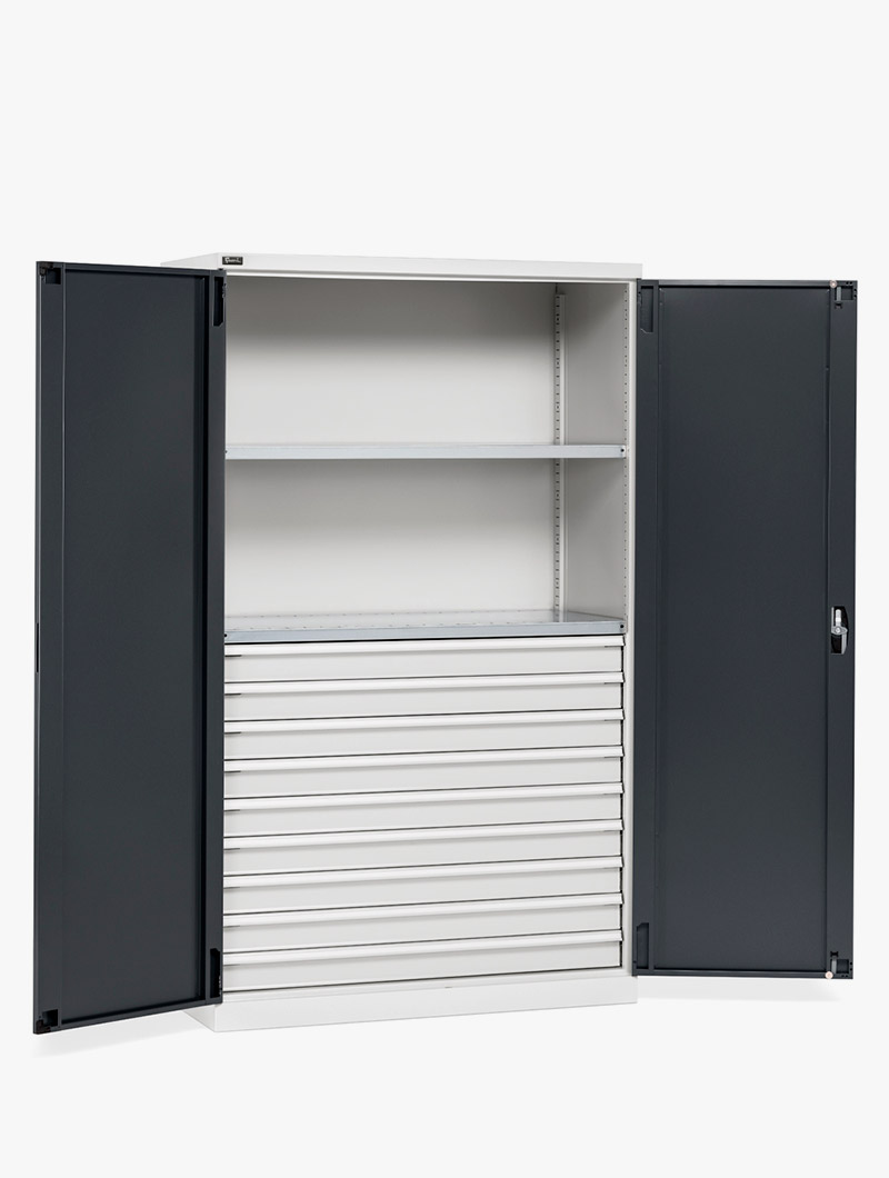 Gran variedad de armarios metálicos, fabricados en acero de alta calidad con una estructura extremadamente sólida, muy amplios y listos para equipar los entornos de trabajo más exigentes.