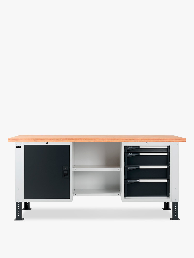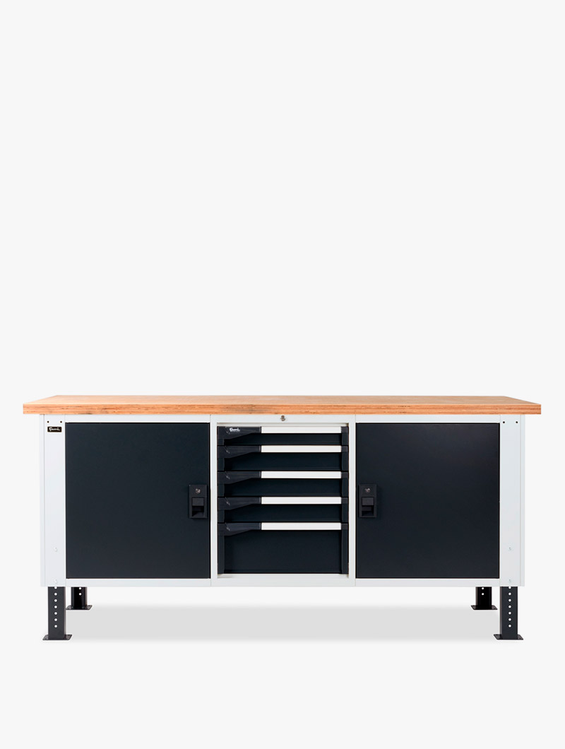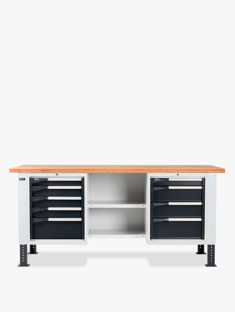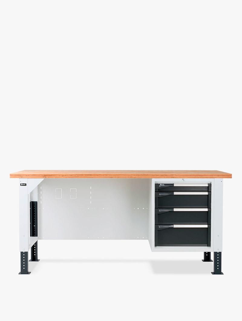 El banco de trabajo con cajones es ideal para la organización de las herramientas y la optimización del espacio del banco de taller.