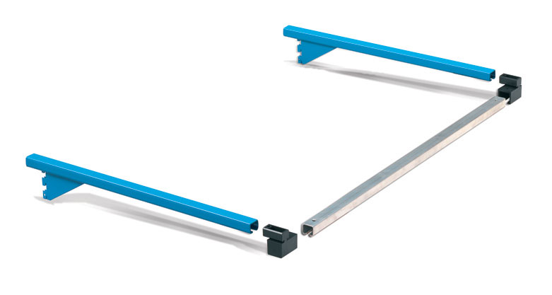 Juego de soportes de profundidad 750mm. para largo 1000-1500mm. Compuesto de 2 soportes (G), 1 juego de tapones de plástico(A+B) y 1 carril de aluminio (H).