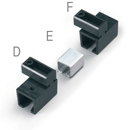 Juego de soportes de profundidad 750mm. para largo 2000-2500mm. Compuesto de 3 soportes (G), 1 juego de tapones de plástico (A+B+C) y 1 carril de aluminio (H).