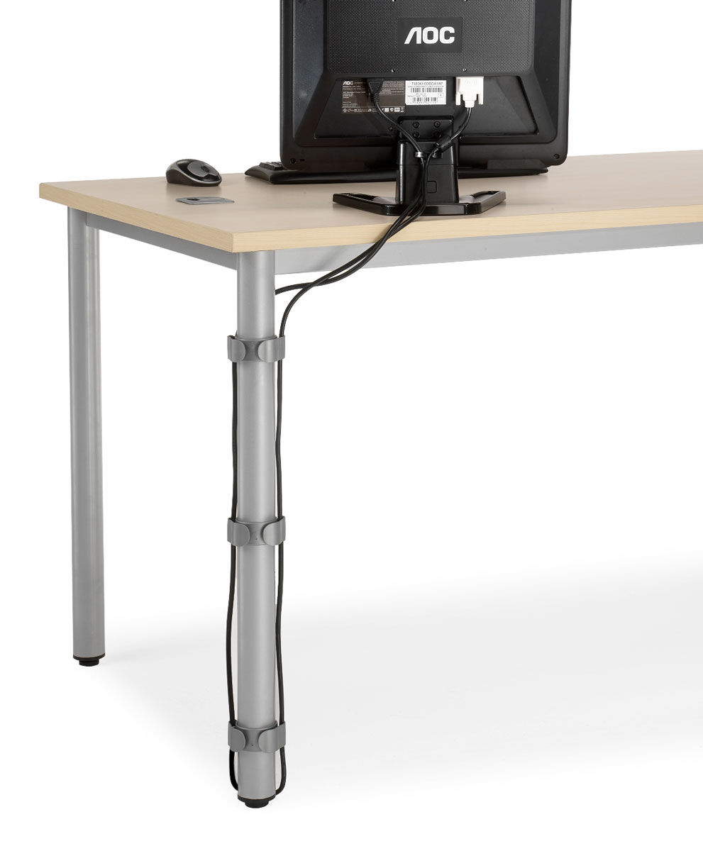 También existe la opción de agrupar los cables junto a la pata mediante una grapas de plástico que se adhieren a la misma pata.