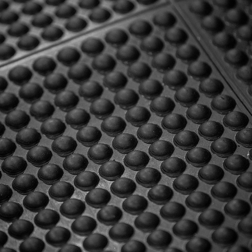 Su superficie superior cuenta con un relieve de medias esferas que proporciona excelentes propiedades antideslizantes, aumentando la estabilidad y reduciendo el riesgo de resbalones.