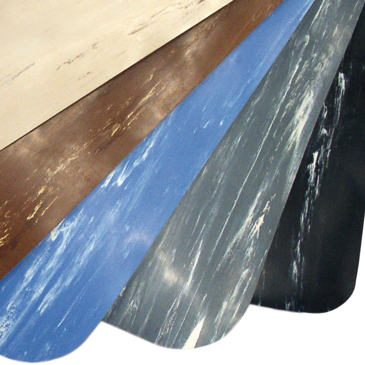 Alfombras duraderas anti-fatiga con superficie de caucho adherida a una espuma de vinilo de 1cm de celda cerrada para una comodidad permanente sin compromisos.