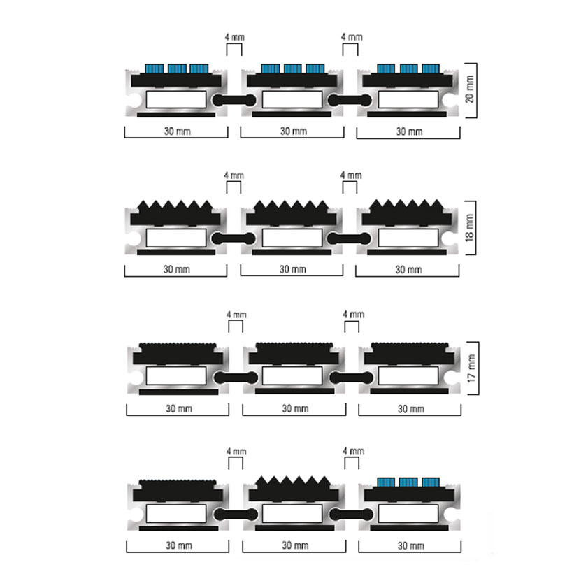 ABI Aluflex Domestic con una altura total entre 17 y 20 mm y una altura del perfil de aluminio de 13 mm.