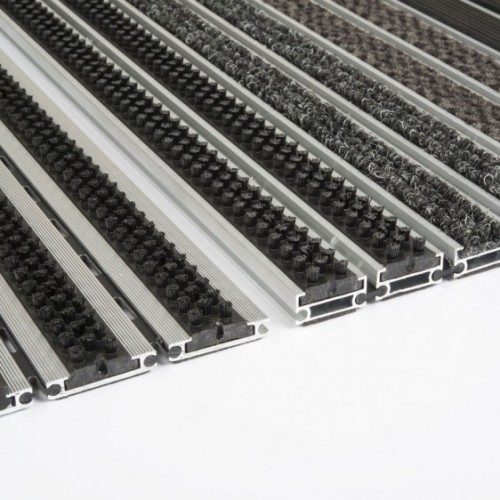 Estas esteras son adecuadas tanto para el exterior como el interior de la entrada. La alfombra Aluflex con cepillos mantienen la arena fuera de las instalaciones. La alfombra se puede utilizar para eliminar la suciedad y la humedad restante de las suelas de los zapatos.