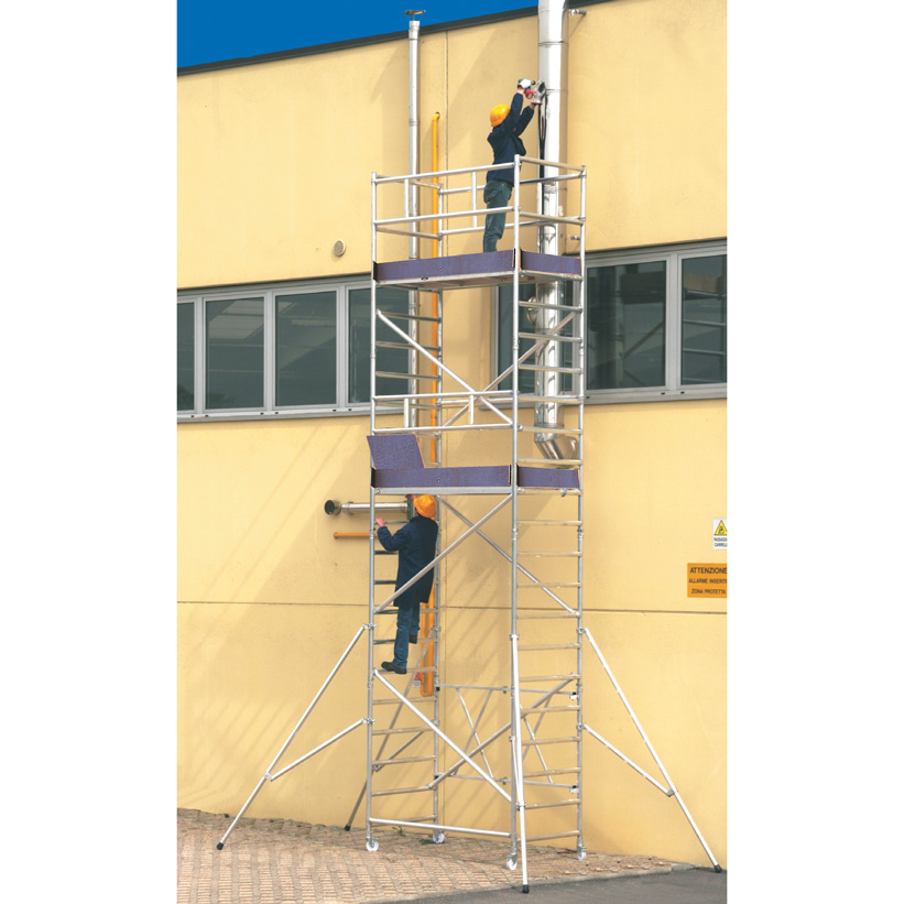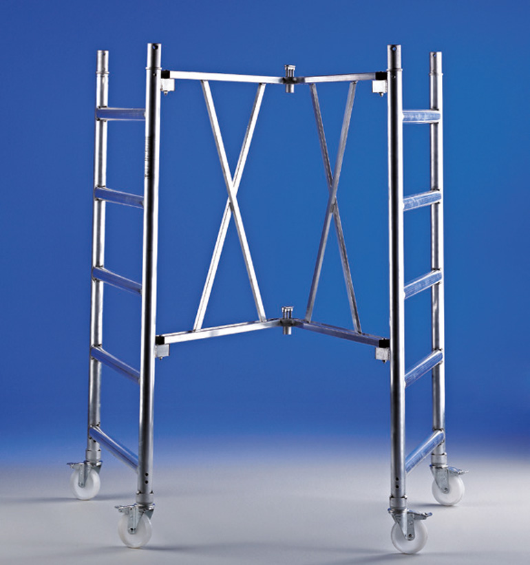 El andamio Solar consta de un módulo básico de 1,70 m, una barandilla de protección a partir de 1,84 m y de extensiones intermedias de 1,50 m y 1,80 m para una altura máxima de 6,76 m.