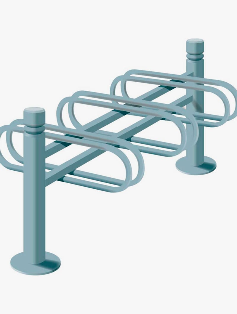 Estructura fabricada en acero galvanizado lacado según color a elegir con poste de 76 mm de diámetro, arcos de 22mm de diámetro y espacio entre arcos de 50 mm.
