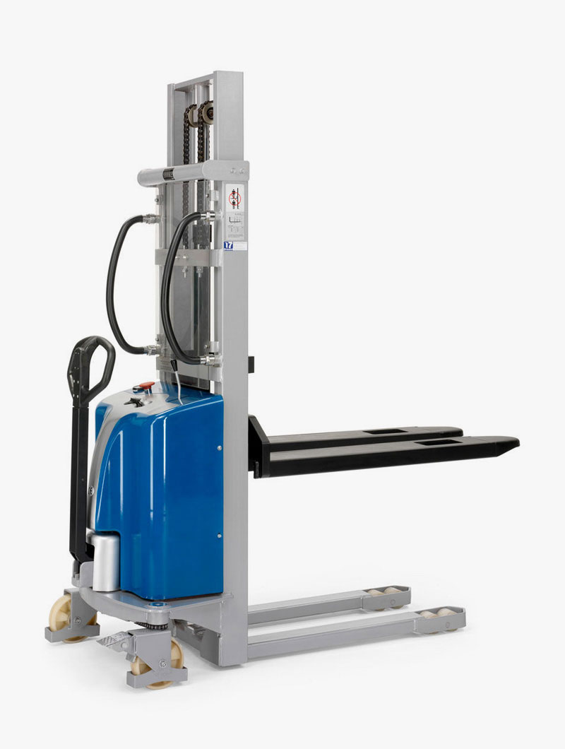 El apilador eléctrico de translación manual para 1000kg combina la potencia de la elevación eléctrica con la sencillez del desplazamiento manual.