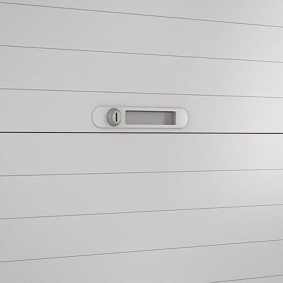 Gracias a éste sistema, la persiana queda enrollada en la parte superior e inferior del armario, brindando al mismo tiempo uno de sus principales argumentos de venta: más metros lineales traducidos en mayor capacidad de archivo que cualquier otro armario.