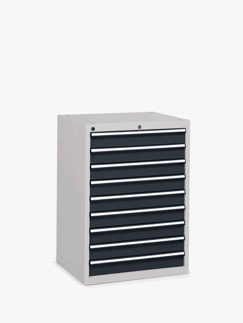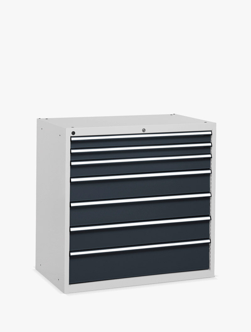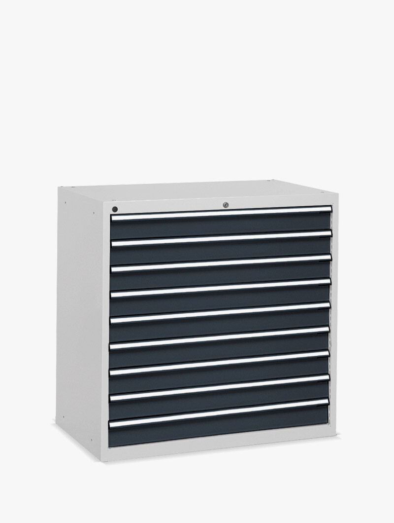 Los armarios industriales Flexa están equipados de serie con cajones de extracción total, con una capacidad de carga de 70 kg. Ideal para quienes tienen problemas de espacio, es excelente como cajonera para herramientas.