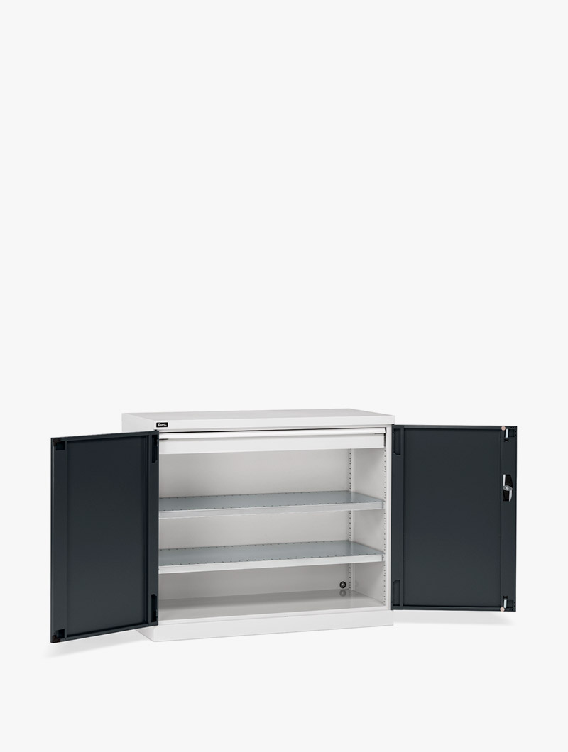El armario con puertas batientes Perfom 1193×1000 tiene una sólida estructura de chapa de metal.