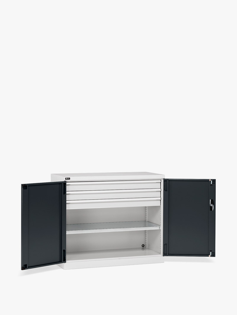 La función del armario depende de los accesorios, elegidos según el uso, que lo convierten en un armario para guardar material, proteger y recargar equipos eléctricos o guardar piezas pequeñas, o en un armario de seguridad antiincendio, de almacenamiento de equipos de protección personal, archivo, etc.