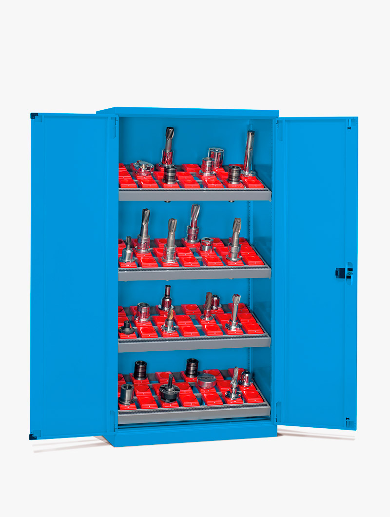 Los marcos son ajustables en altura y se pueden montar horizontalmente o inclinados. Los armarios portaherramientas con bandejas porta-casquillos y soportes inclinados es ideal para catalogar de forma ergonómica las herramientas CNC. Apto para talleres, oficinas y cualquier sitio que precise de almacenaje seguro de objetos y otros materiales de los que precise el sector.