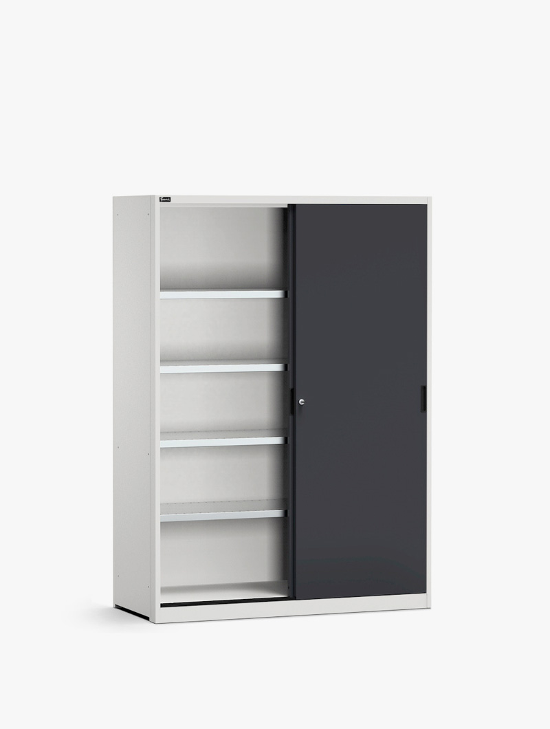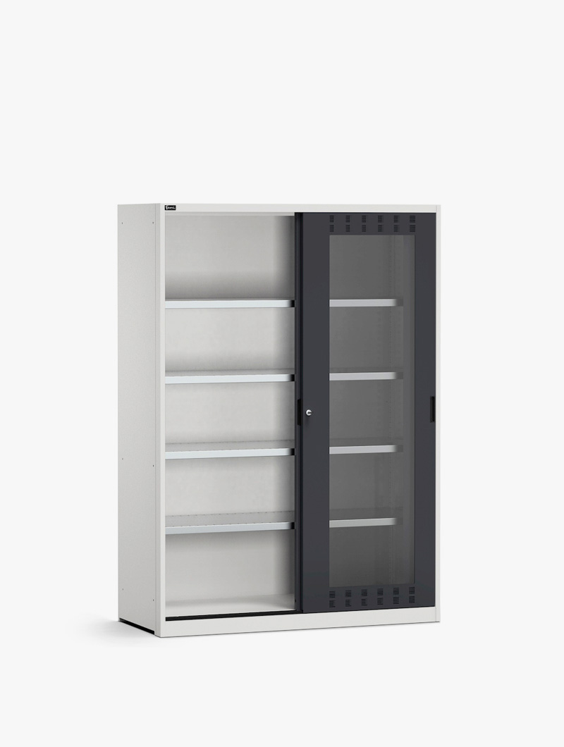 Su estructura sólida en chapa de acero garantiza una resistencia industrial, mientras que su diseño de puertas deslizantes permite colocarlo en pasillos o zonas estrechas donde las puertas batientes serían un obstáculo.