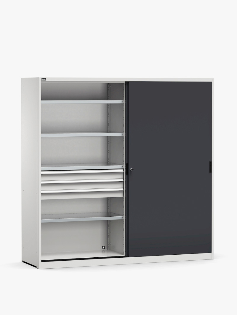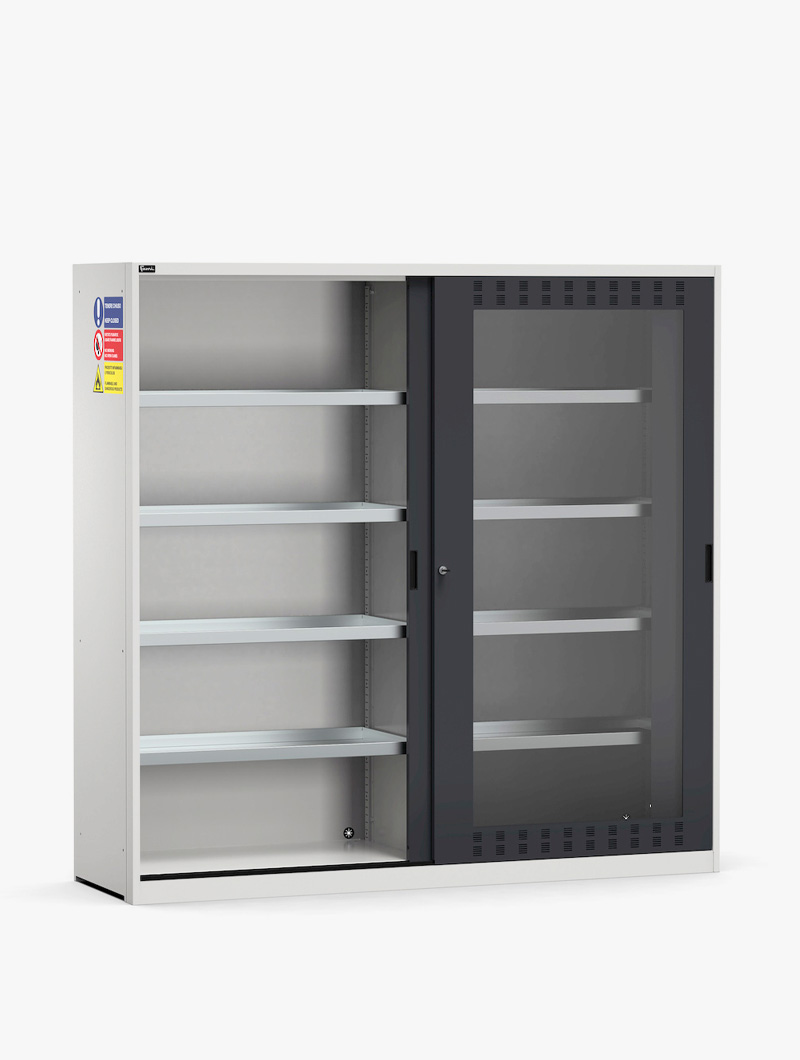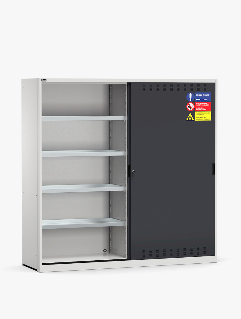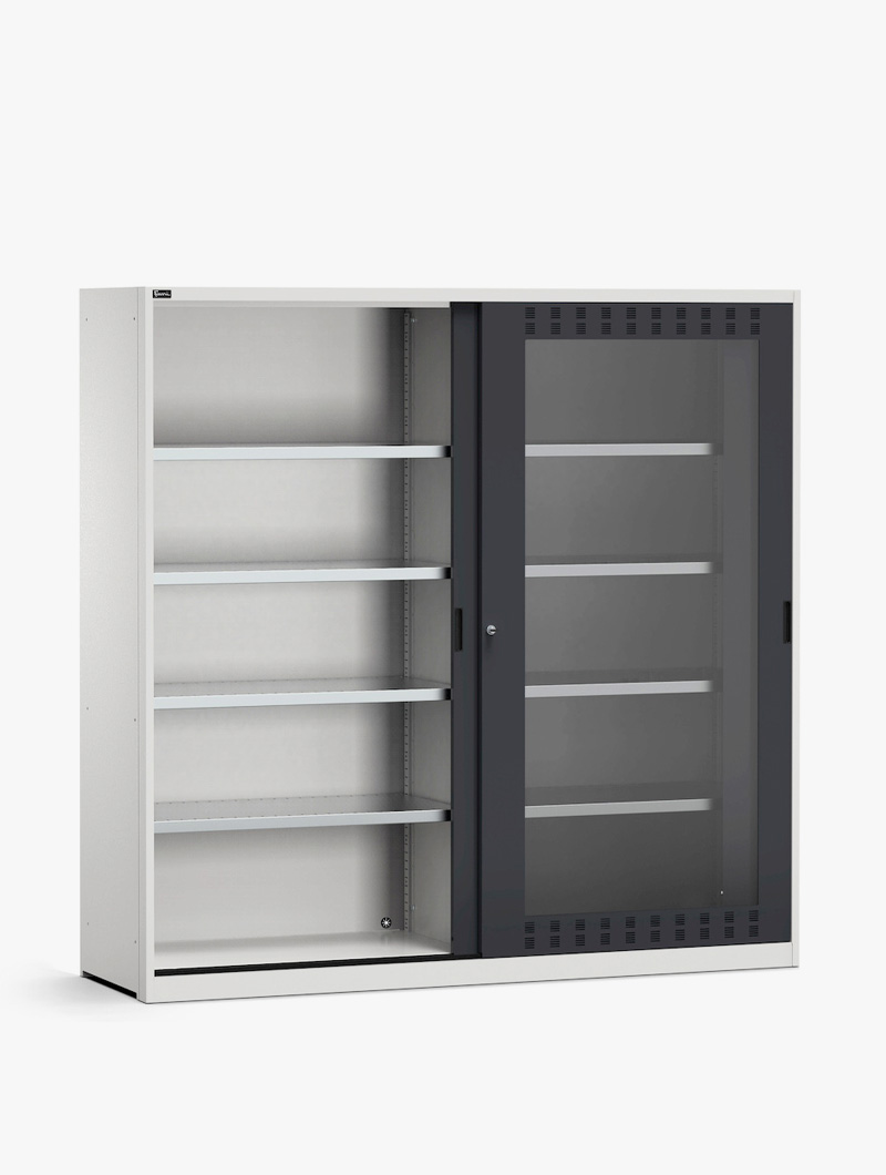 Su estructura sólida en chapa de acero garantiza una resistencia industrial, mientras que su diseño de puertas deslizantes permite colocarlo en pasillos o zonas estrechas donde las puertas batientes serían un obstáculo.