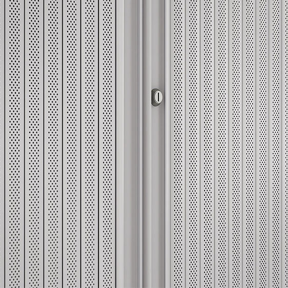 Material puertas: Persiana tri-lama fabricada en PVC y con troquelados que aportan propiedades fonoabsorbentes.