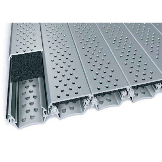Persiana acústica: Perfil de persiana de gama alta con troquelado que permite la absorción del ruido.