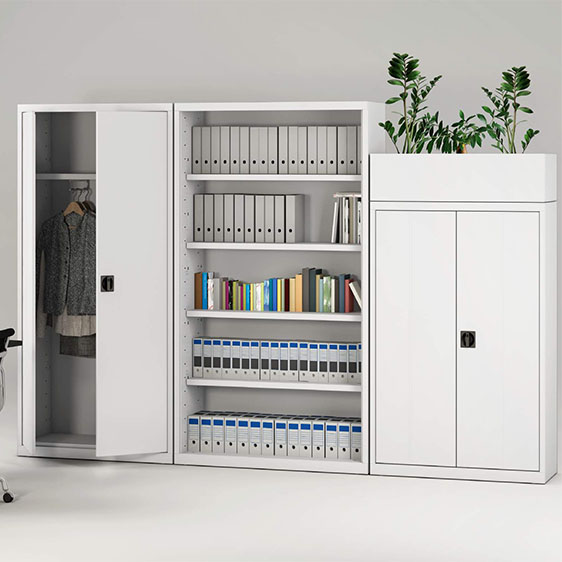 Armarios de puerta batiente económicos, funcionales, robustos y con diseño adaptable a cualquier espacio de trabajo.