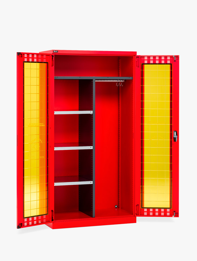 El Armario de seguridad contra incendios cuenta con una sólida estructura de chapa de metal y ha sido diseñado específicamente para la custodia de equipos de protección personal (EPP) y sistemas antiincendio.