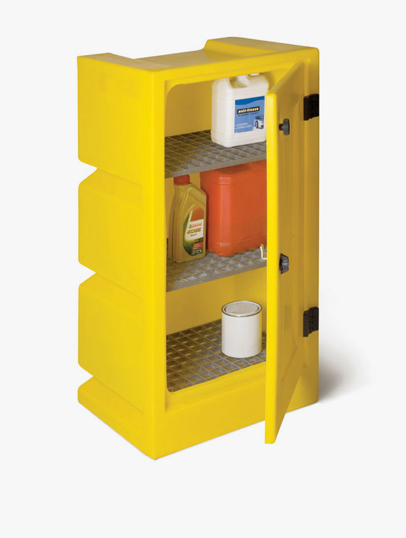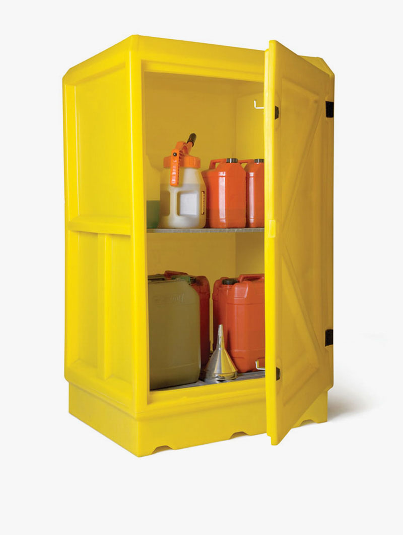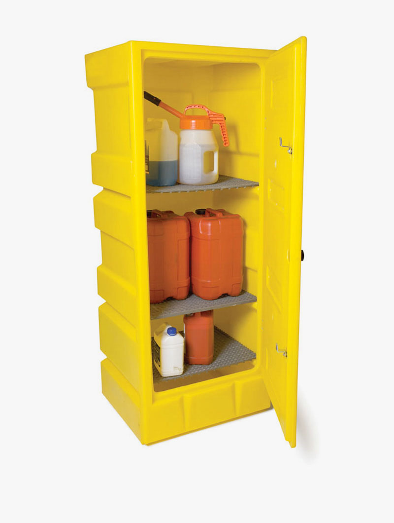 Estos armarios, al ser de polietileno, permiten almacenar contenedores, como puede ser un bidón, que contengan algún tipo de líquido que pueda resultar corrosivo.