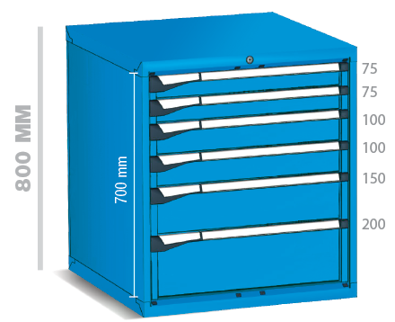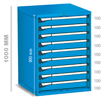 Los Armarios con cajones MASTER (36×36 Eh) están fabricados en chapa de acero de alta calidad y pintados con pintura de alta resistencia para asegurar una larga vida útil.