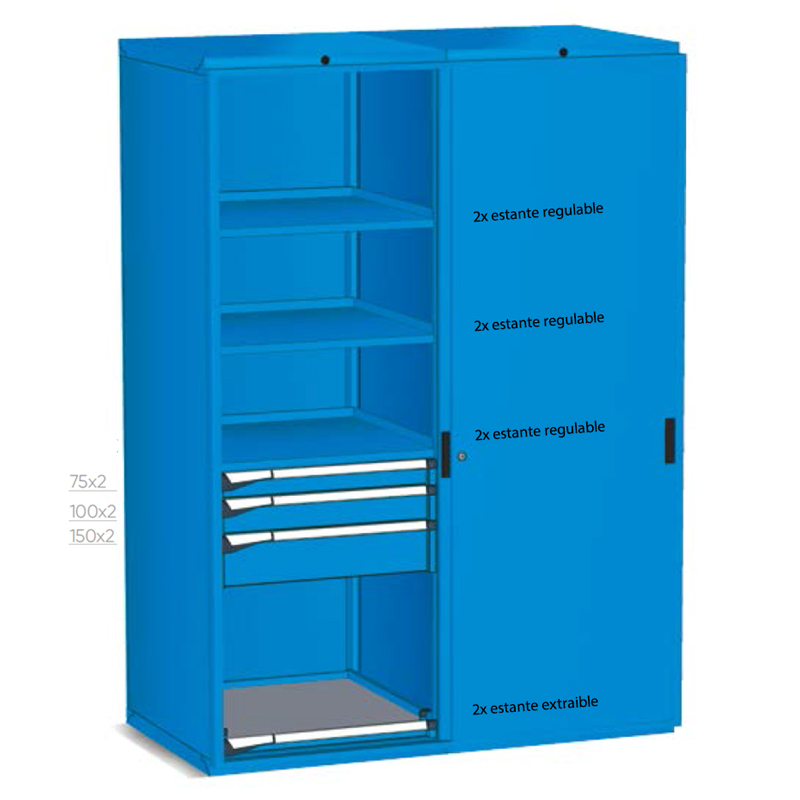 Esta flexibilidad permite configurar el armario según la carga puntual almacenada y reajustarlo de nuevo si sus necesidades productivas o el tipo de producto cambian con el tiempo.