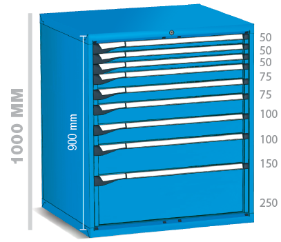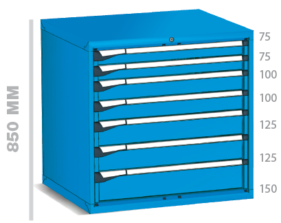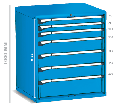 Los Armarios con cajones MASTER están fabricados en chapa de acero de alta calidad y pintados con pintura de alta resistencia para garantizar una durabilidad superior.