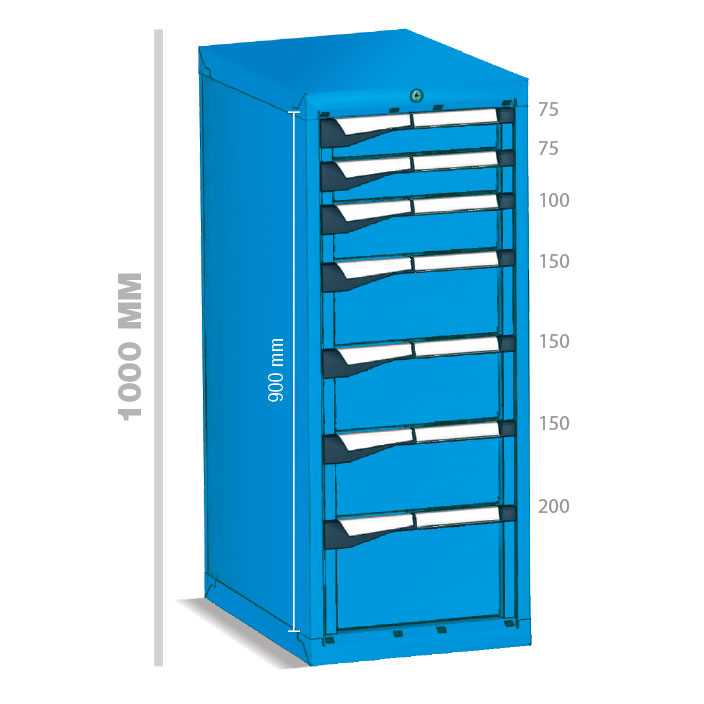 Los Armarios con cajones MASTER (18×27 Eh) están fabricados en chapa de acero de alta calidad y acabados con pintura de alta resistencia, garantizando una durabilidad excepcional en cualquier entorno profesional.