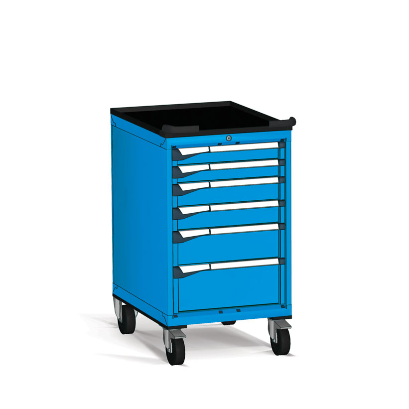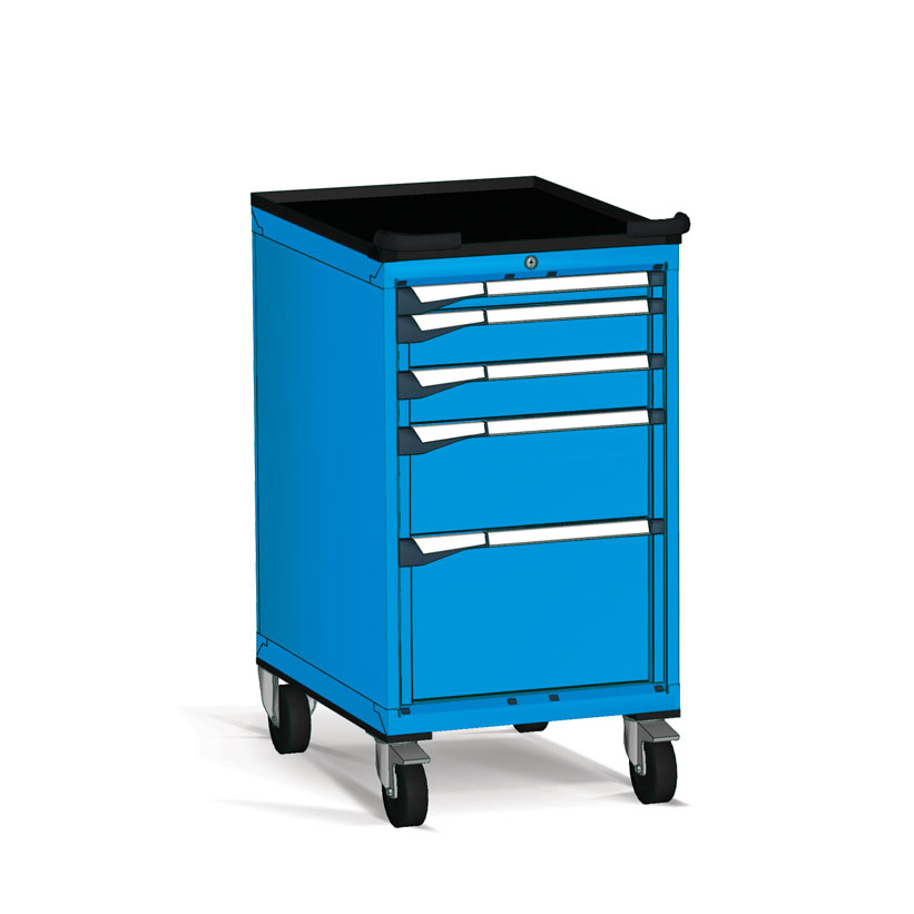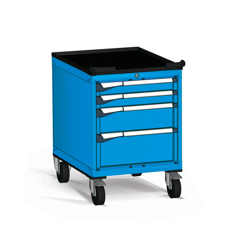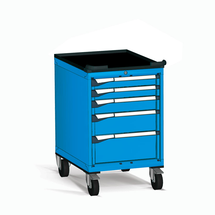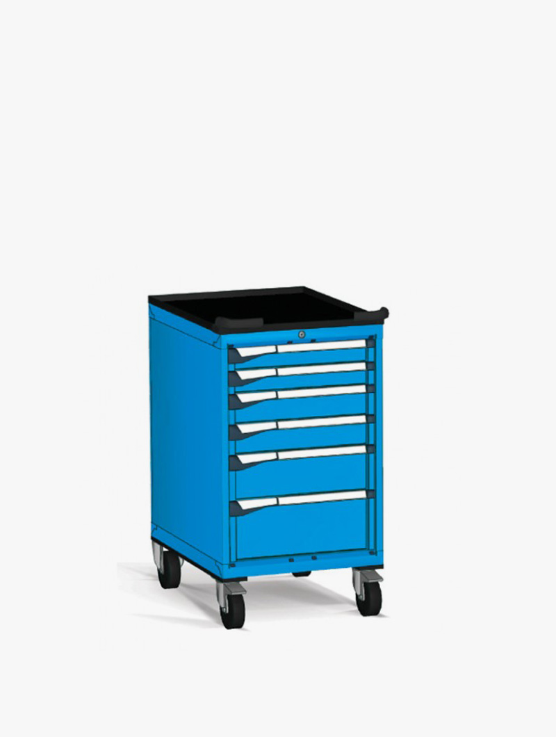 Fabricados en chapa de acero de alta calidad y tratados con pintura de alta resistencia, estos armarios permiten trasladar herramientas y componentes voluminosos por toda la superficie de trabajo con total seguridad y ergonomía.