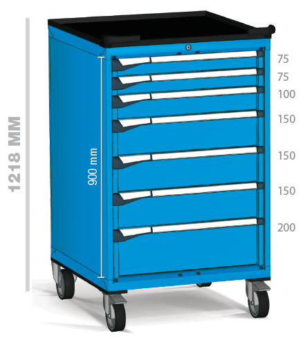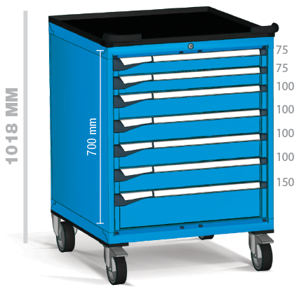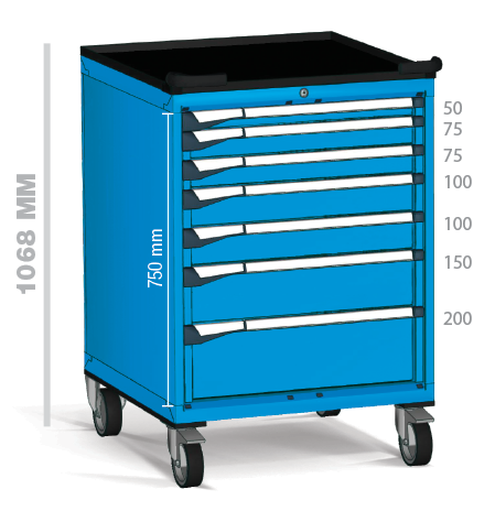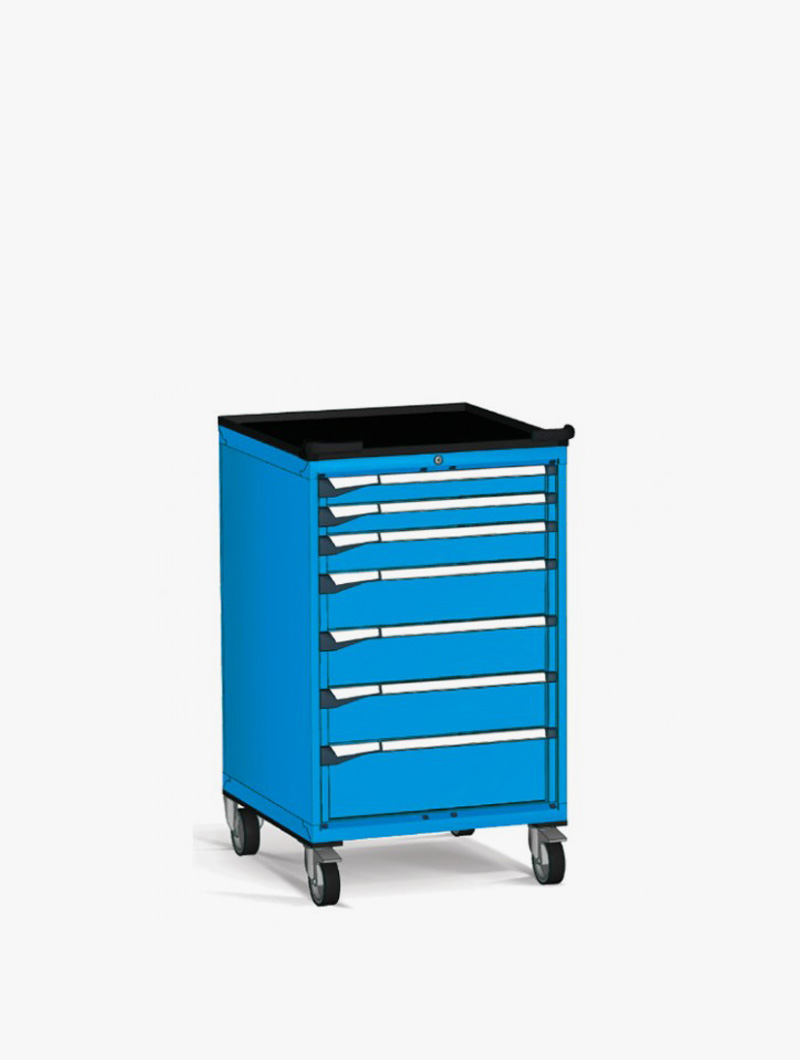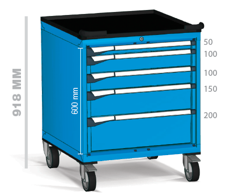 Fabricados en chapa de acero de alta calidad y pintados con pintura de alta resistencia, estos armarios ofrecen un formato cuadrado de grandes dimensiones que permite desplazar inventarios voluminosos o conjuntos completos de herramientas con total estabilidad y seguridad.
