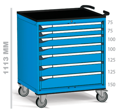 Esta versatilidad es fundamental para adaptar el carro a las herramientas específicas de cada proyecto, permitiendo variar la configuración si el tipo de producto almacenado cambia.
