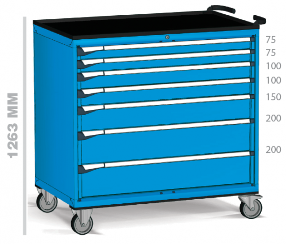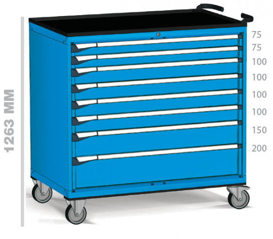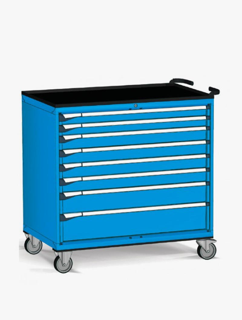 Fabricados en chapa de acero de alta calidad y pintados con pintura de alta resistencia, estos armarios están diseñados para organizar grandes inventarios de herramientas y componentes, permitiendo su traslado seguro hasta el punto de uso.