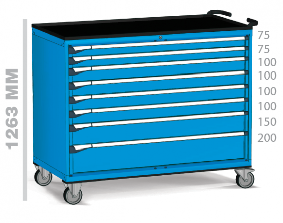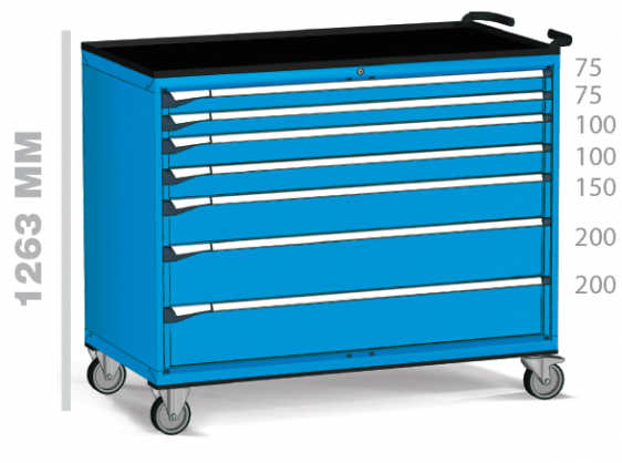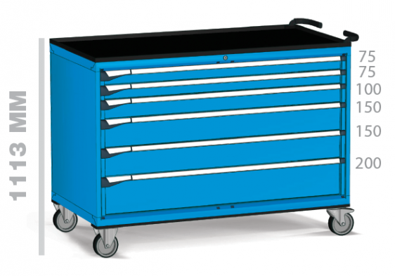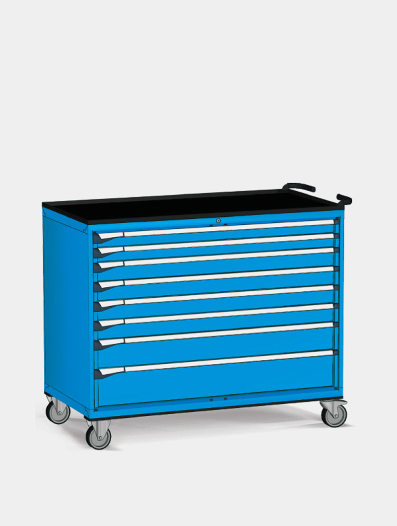 Fabricados en chapa de acero de alta calidad y protegidos con pintura de alta resistencia, estos armarios están diseñados para desplazar grandes volúmenes de herramientas o componentes con una estabilidad excepcional.