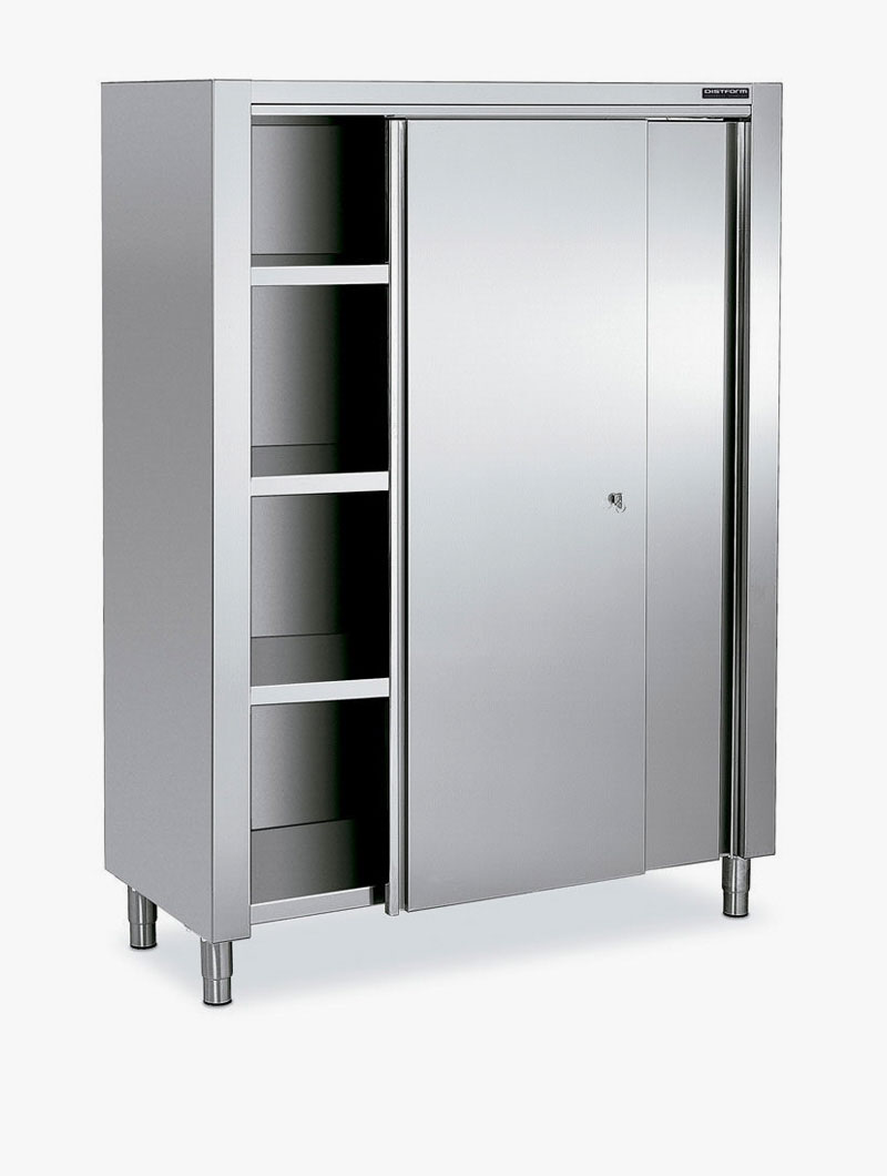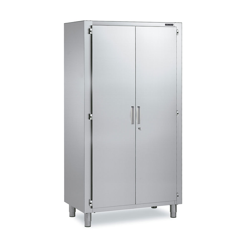 Los armarios de acero inoxidable están fabricados en acero inoxidable AISI 304 18/10, garantizando una excelente resistencia a la corrosión y un acabado satinado que asegura durabilidad y fácil mantenimiento. Estos armarios son ideales para entornos profesionales como cocinas industriales, laboratorios y áreas de trabajo que requieren soluciones de almacenamiento higiénicas y robustas.