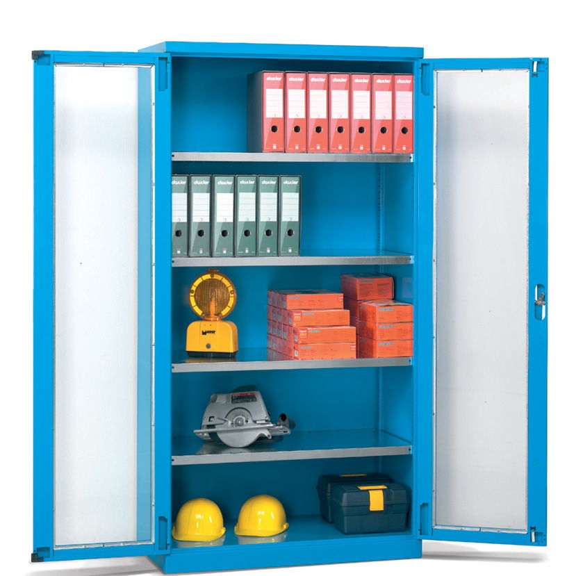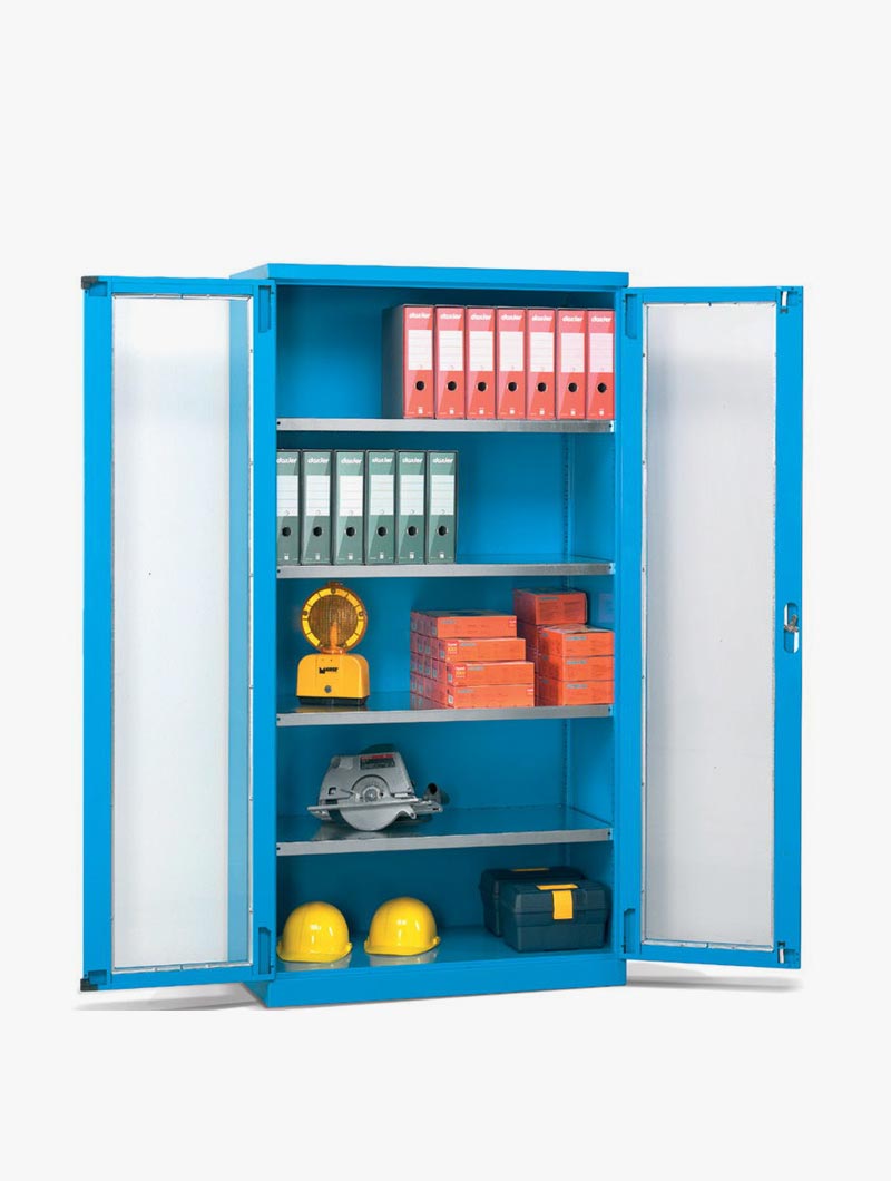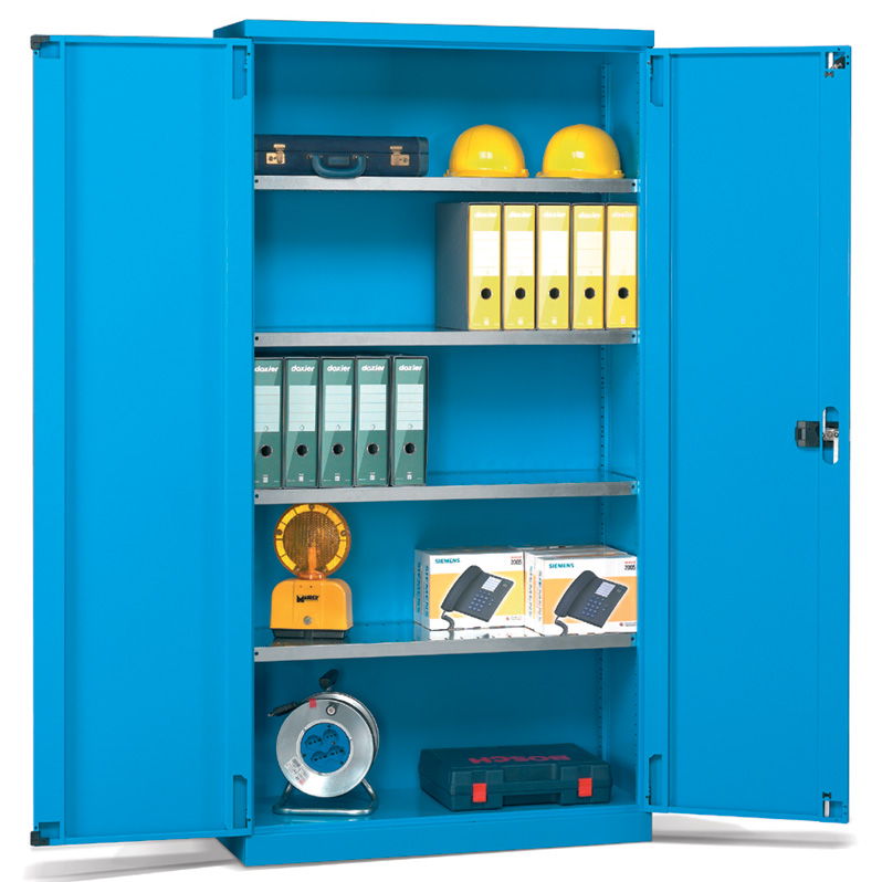 Los armarios metálicos para taller y oficina con cajones y puertas batientes de distintas medidas configuran un grupo de armarios pensados para el almacenaje y la custodia de elementos de pequeñas o medianas dimensiones y de pesos medios.