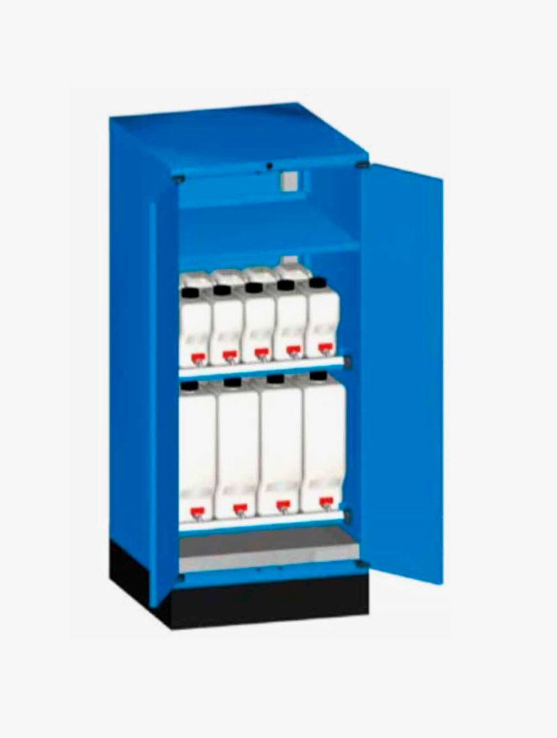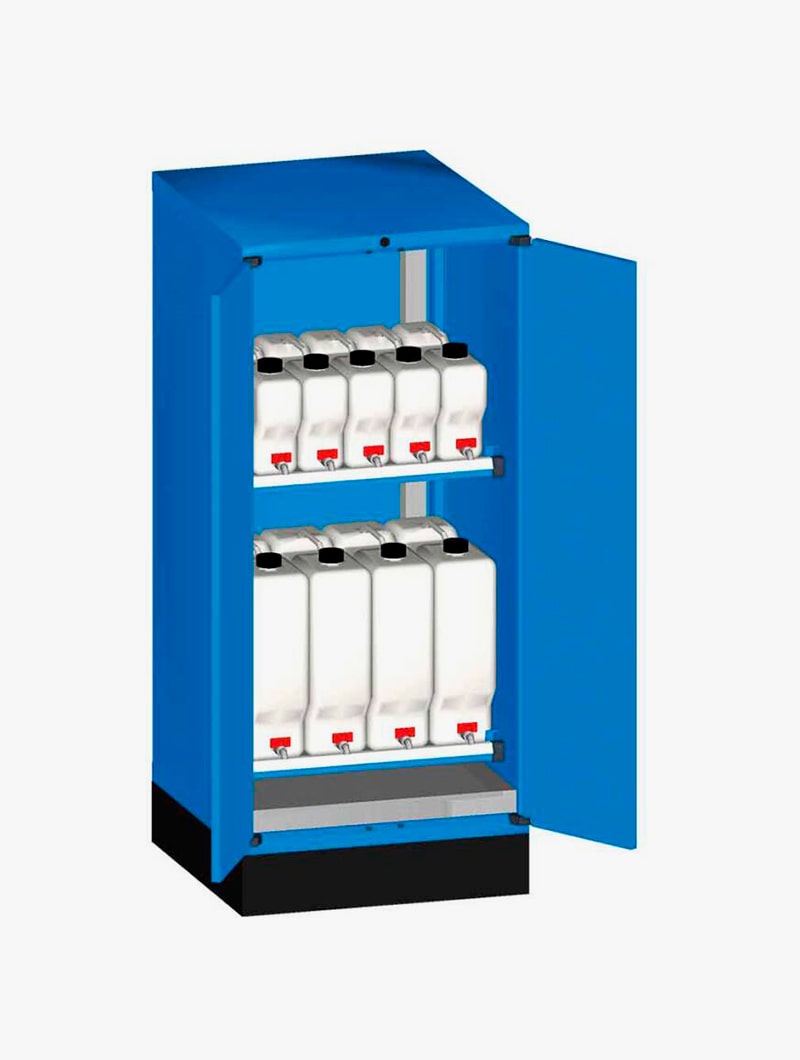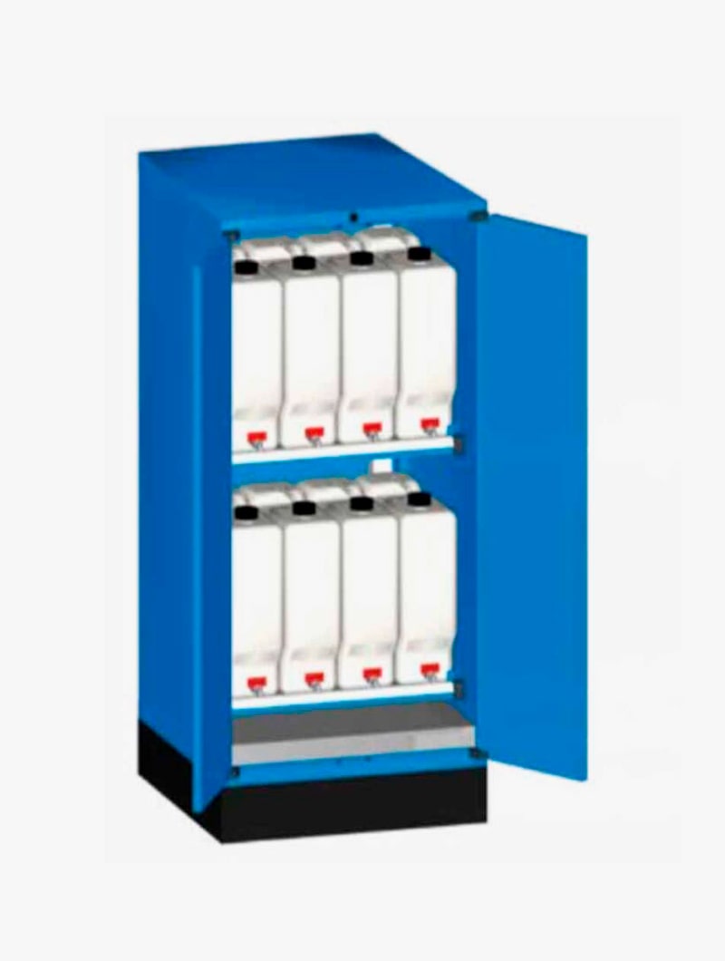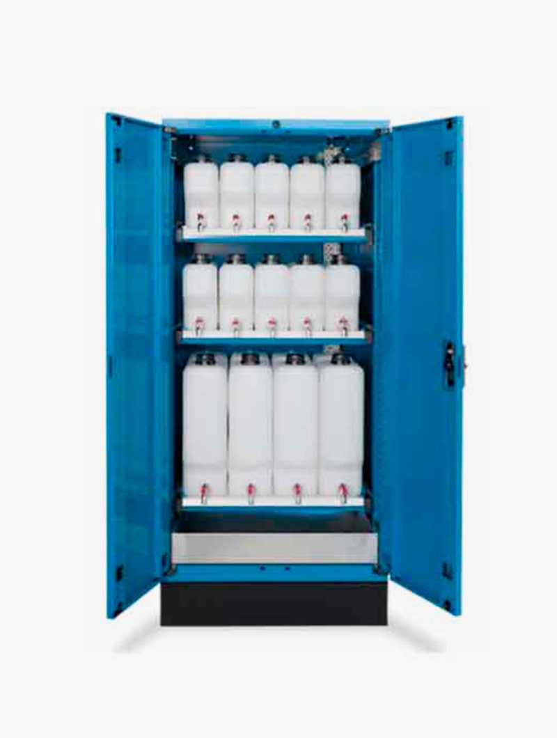 Armarios metálicos Master FO con garrafas y cubeto para el almacenamiento de líquidos