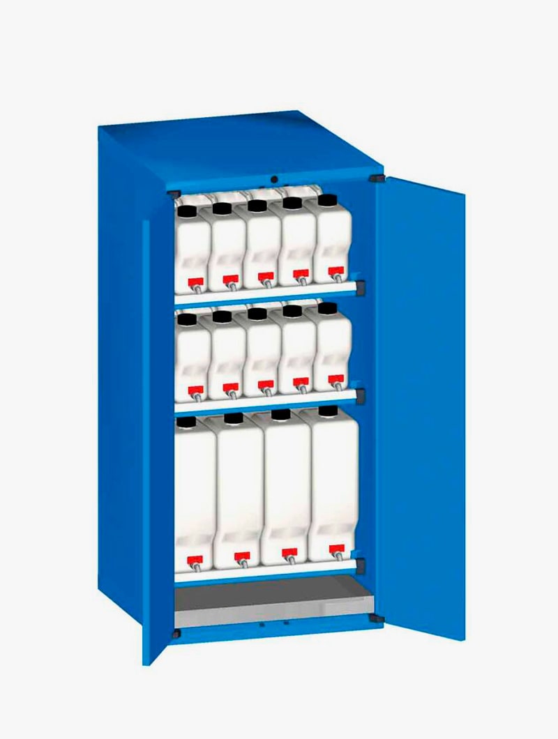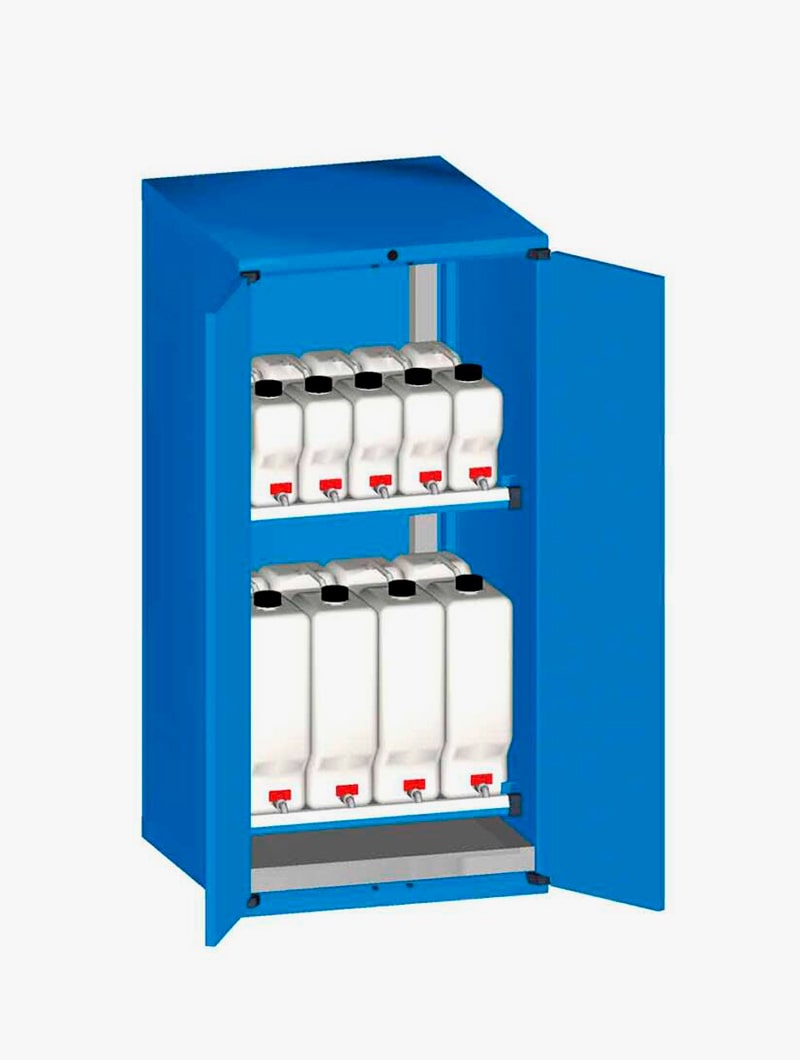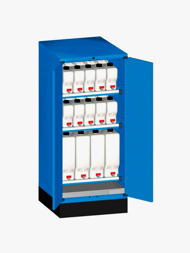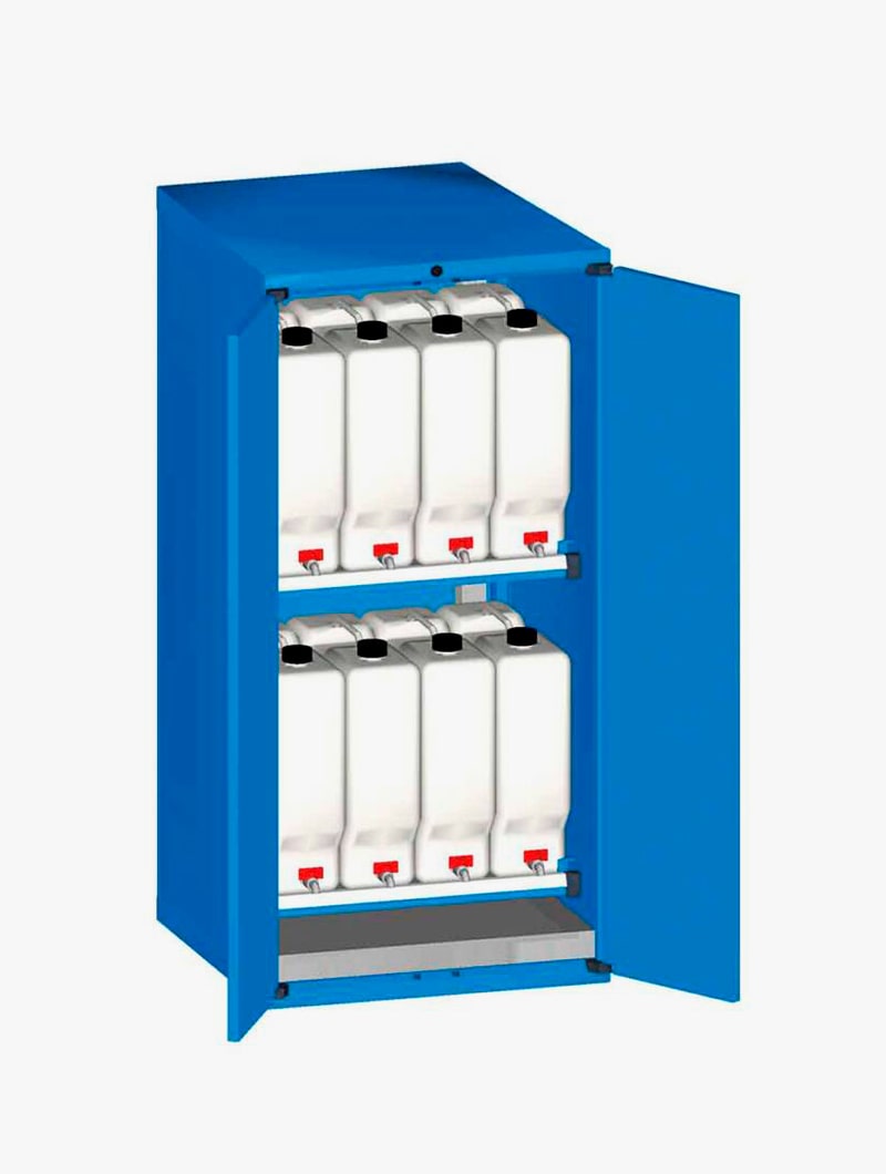 Armarios metálicos Master FO con garrafas y cubeto para el almacenamiento de líquidos