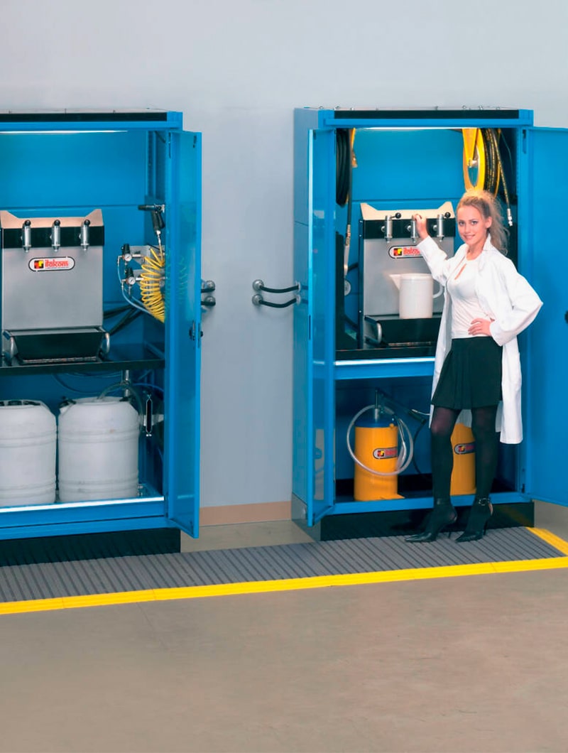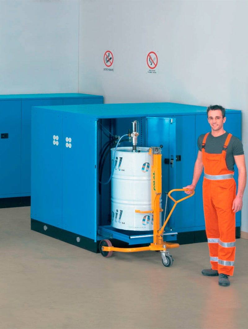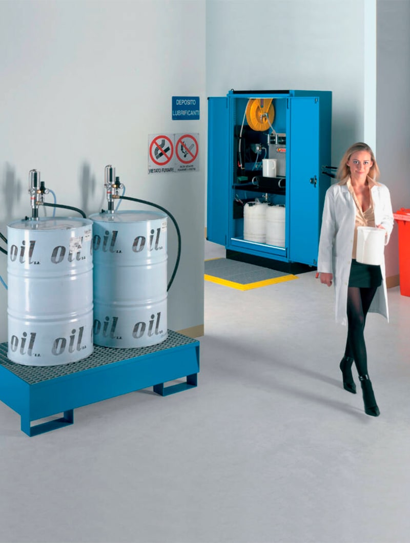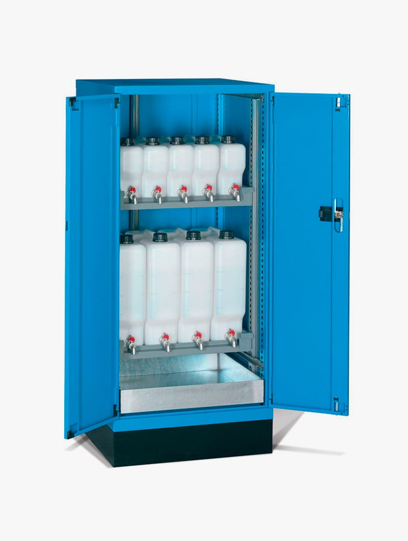 Armarios metálicos STANDARD FO con garrafas y cubeto para el almacenamiento de líquidos y aceites