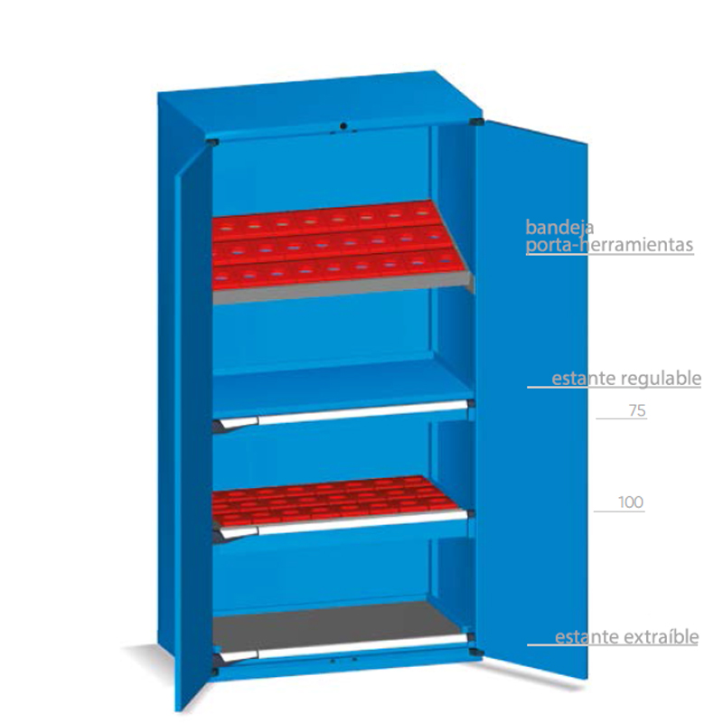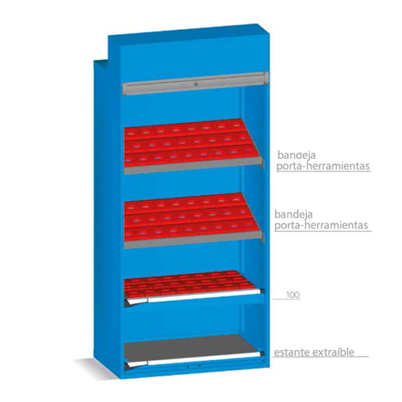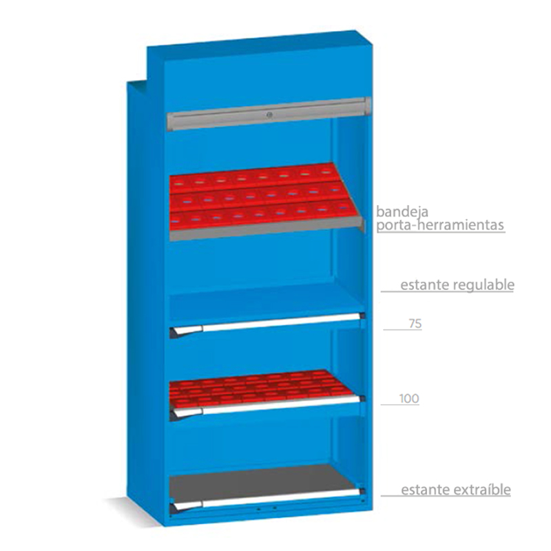 Nuestros armarios de distribución, con su amplia gama de accesorios, son candidatos ideales como modernos medios logísticos para centros CNC. Disponibles en 4 modelos, diferentes en anchura y profundidad, los armarios CNC son versátiles en cualquier entorno de trabajo, respondiendo adecuadamente a las necesidades cada vez más cambiantes de las empresas. Con puertas batientes, con puertas correderas y con persiana enrollable.