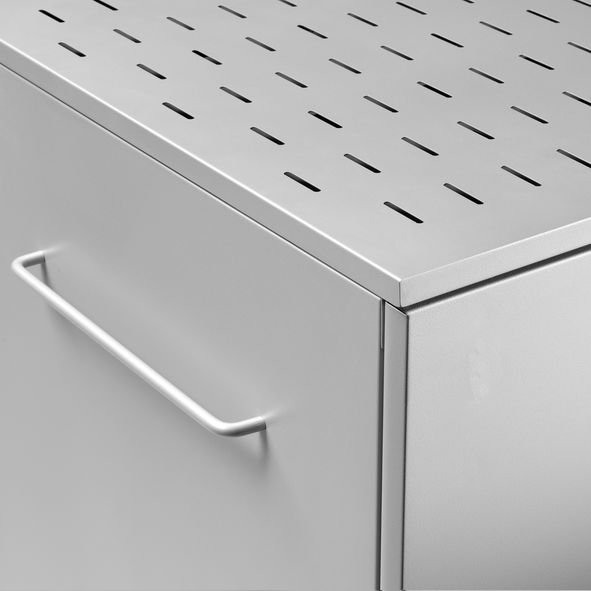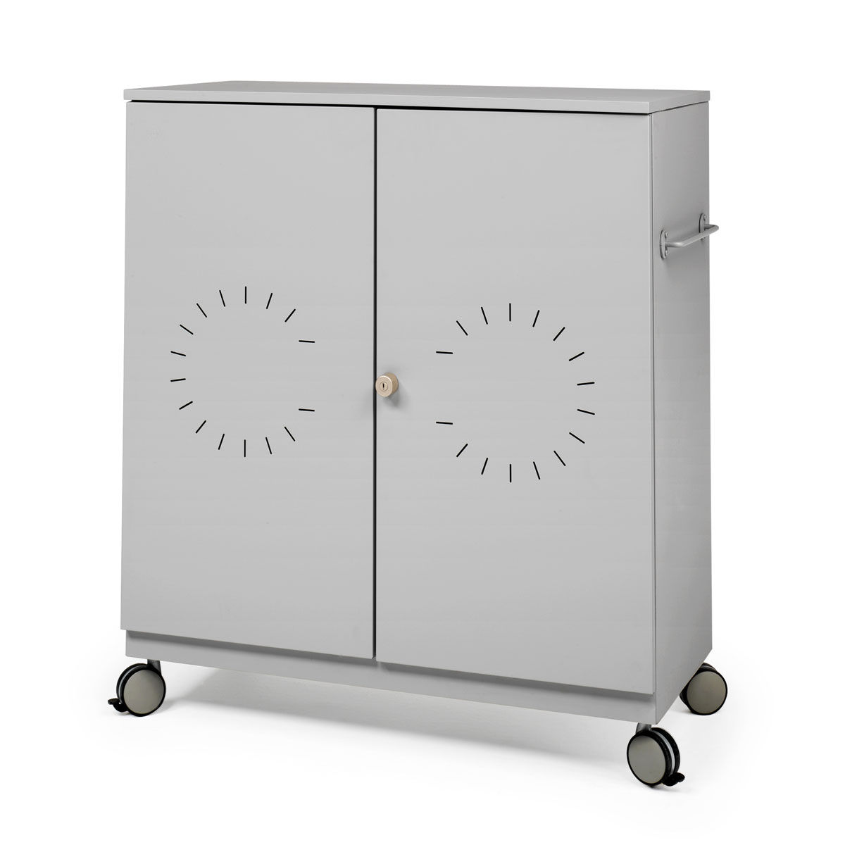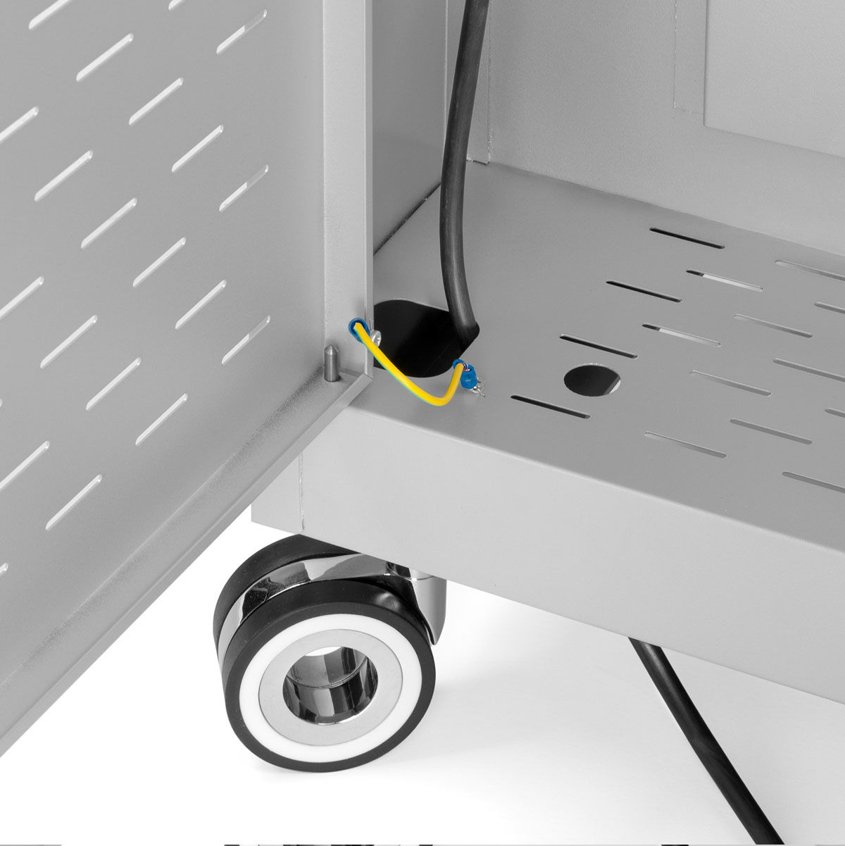 - 4 ruedas giratorias, dos de ellas con freno de pie para facilitar el bloqueo del armario una vez alcanzada su posición.