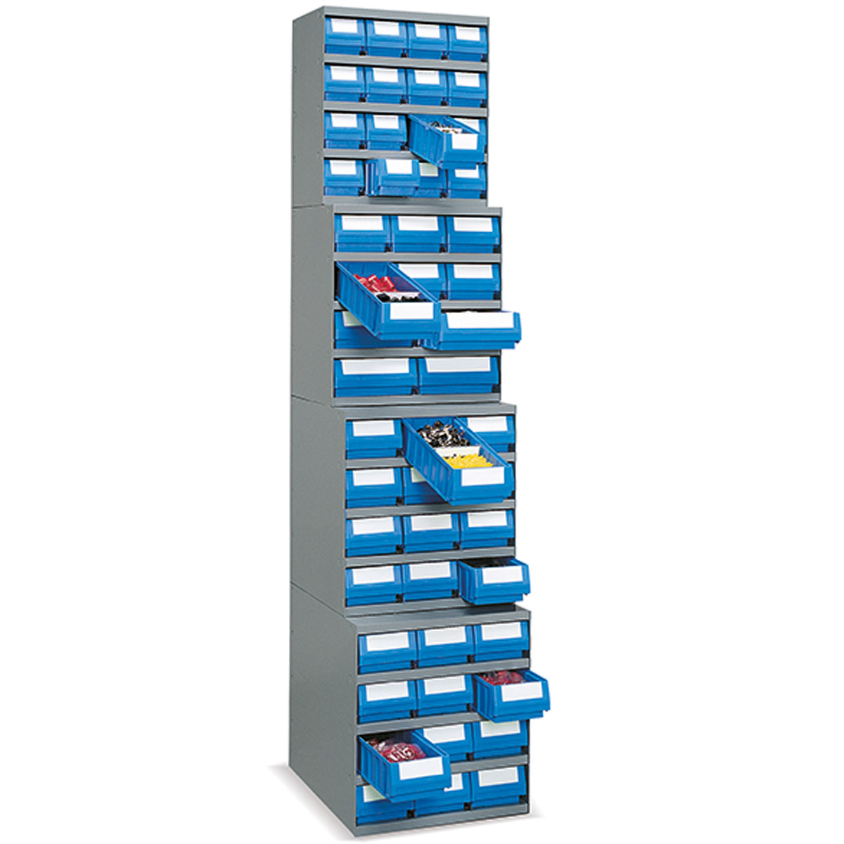 Estos armarios apilables han sido diseñados específicamente para optimizar el uso de las cajas RK, permitiendo una organización impecable de componentes y piezas pequeñas en cualquier entorno industrial.