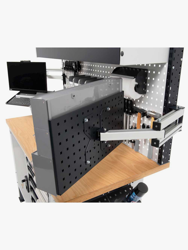 - Kit de 2 paneles perforados/repisas con 1 borde
