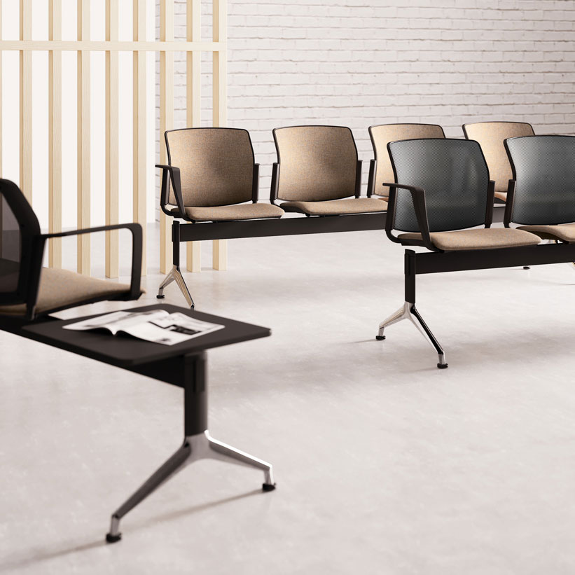 F03 destaca como un sistema completo de sillas de espera montadas en barra, gracias a las múltiples opciones disponibles para asientos, bases y accesorios. La variabilidad de estas combinaciones estéticas y funcionales permite satisfacer las más diversas necesidades de quienes desean trabajar en un entorno verdaderamente moderno.