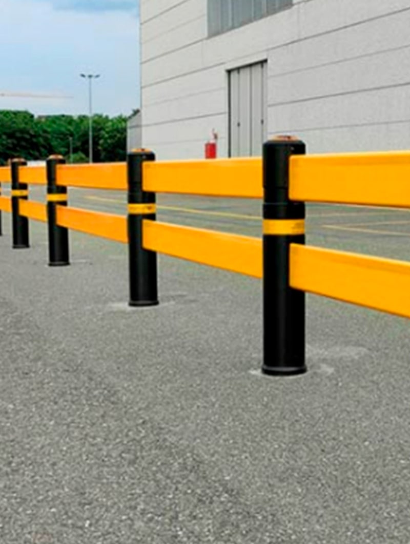 Cumple con todos los requisitos para asegurar una ruta peatonal. Totalmente modular, se adapta a cualquier tipo de ruta y es extremadamente flexible. Cada módulo consta de dos / tres perfiles de una barandilla de polímero reforzado con clase V0 a prueba de fuego y dos columnas terminales. La estructura dinámica con alta resistencia caracteriza esta barrera, por lo que es una excelente protección contra carros y vehículos en movimiento. Cumple: regulaciones de HACCP y regulaciones de prevención de accidentes.