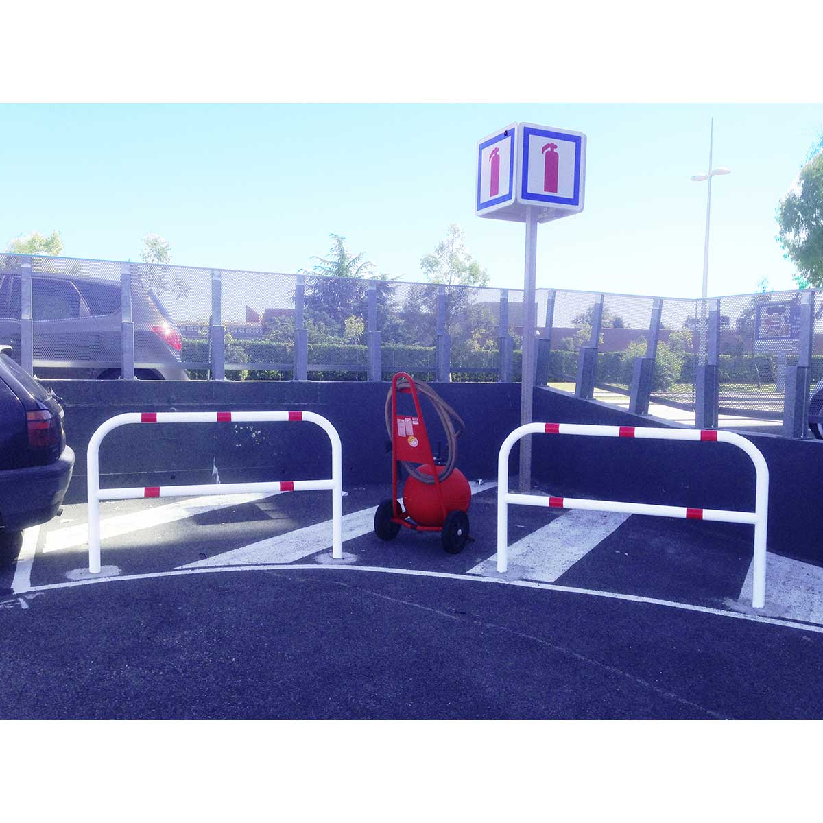 Barandillas de fijación por encastre. Protegen contra colisiones e invasión de zonas peatonales de diferentes diámetros. Ideal para proteger zonas peatonales, columnas, maquinaria, estanterías, depósitos...