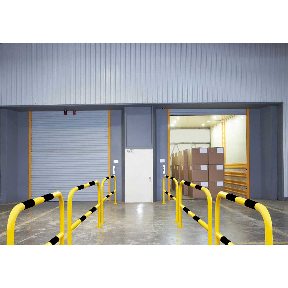 Acabado galvanizado o pintado sobre galvanizado en color amarillo (RAL 1021) y bandas negras.
