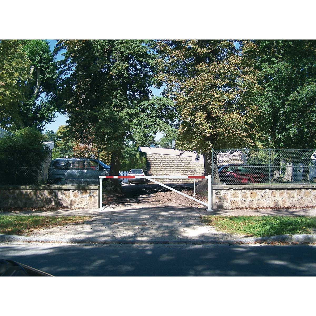 Fabricado con perfiles cuadrados de acero lacado blanco sobre galvanizado con bandas reflectantes