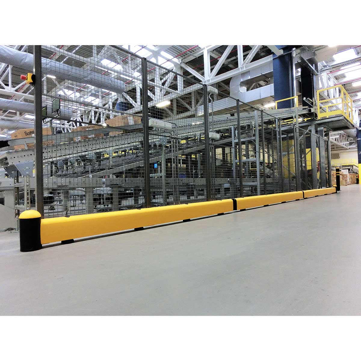 Barrera protectora para zonas de paso o ubicaciones de carga fabricado con perfil de geometría variable que permite una deformación controlada en caso de impacto. Sistema de fijación al suelo que reduce el estrés en las uniones. Protege el material y el vehículo.