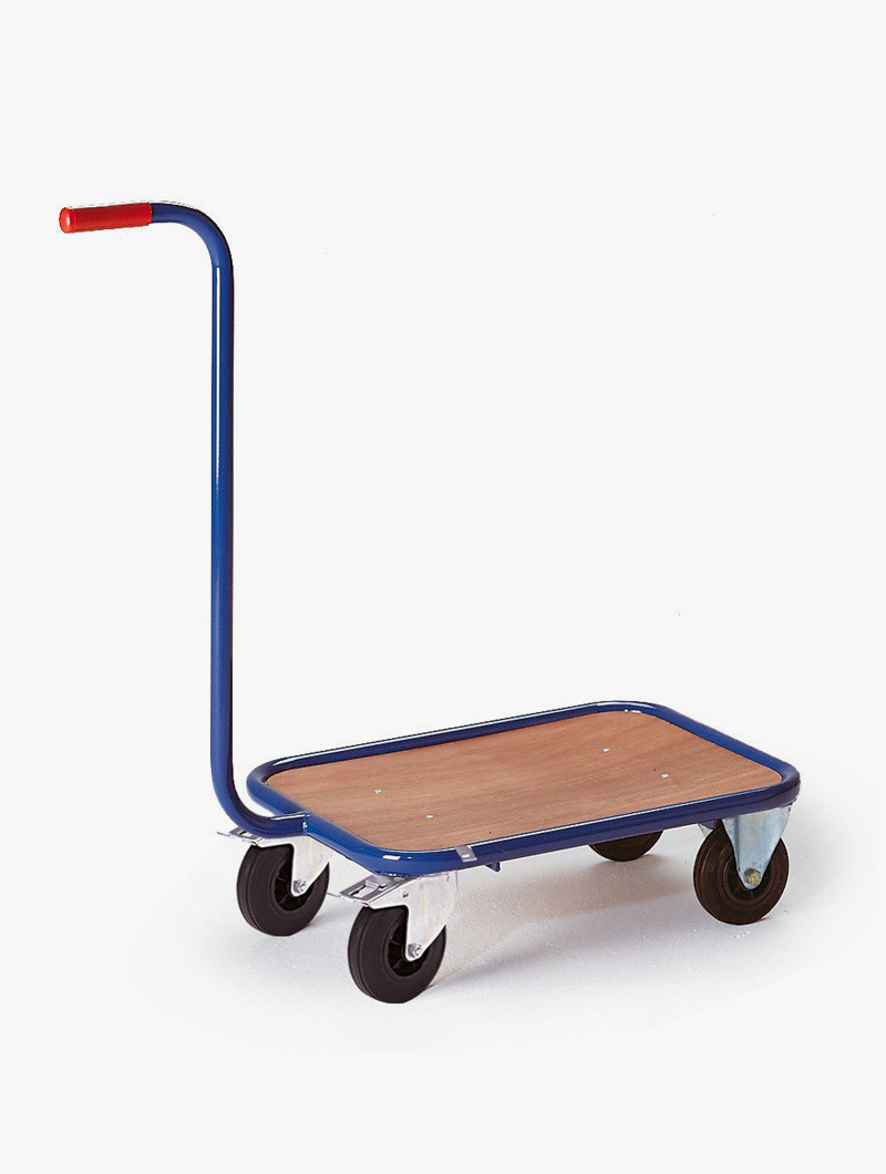 Bases rodantes con tirador con estructura base hecha a partir de tubo de acero pintado de diámetro 26,9mm y espesor 1,75mm. Estructura completamente soldada. Estantes fabricados a partir de conglomerado de madera MDF de alta resistencia. Ruedas con recubrimiento de goma dura y sistema de giro con rodamientos. Estructura de acero galvanizado. Dispone de 2 ruedas fijas y 2 giratorias con freno de pie que bloquea a su vez el giro según norma EN1757-3. Se entregan montadas.