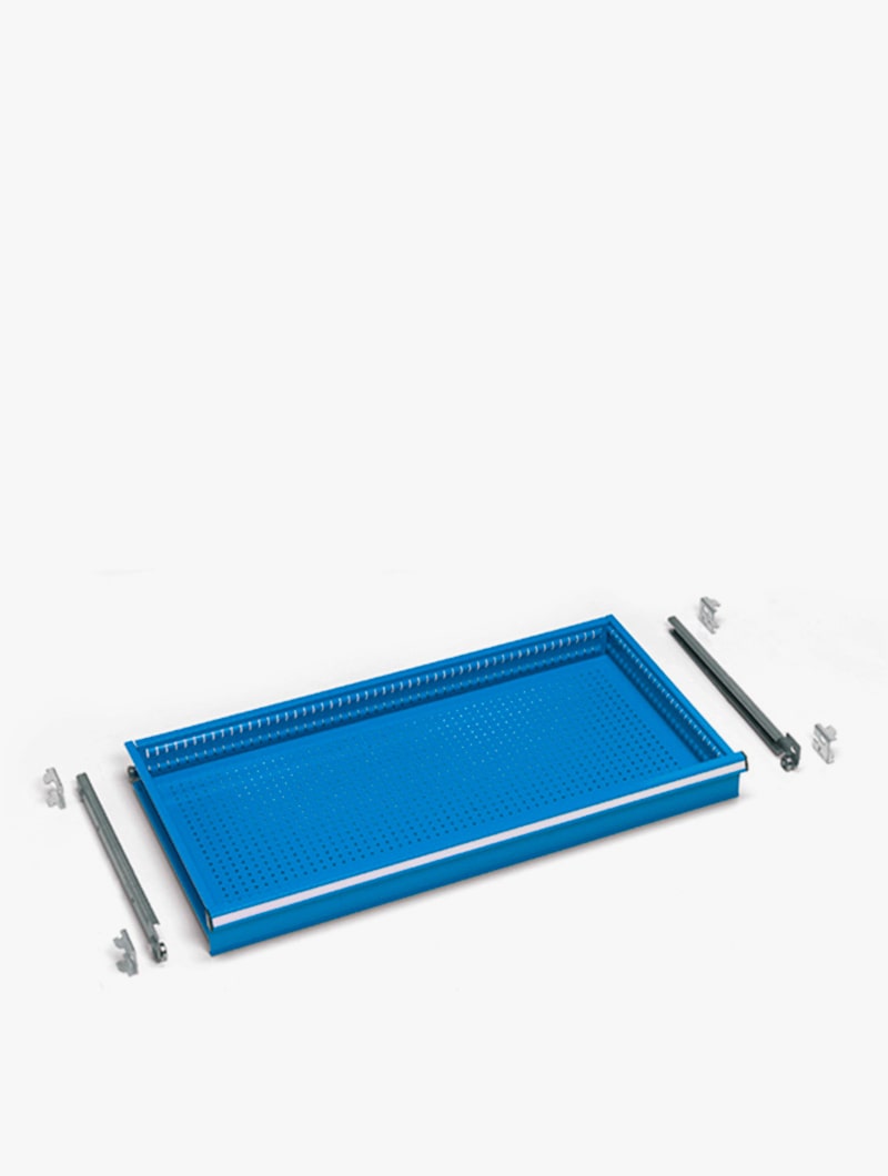 Las paredes y la base están diseñadas para poder fijar todo tipo de accesorios que ayudan a mejorar el orden, como por ejemplo: paredes ranuradas, separadores, acanaladuras plásticas, cubetas de división, etc.